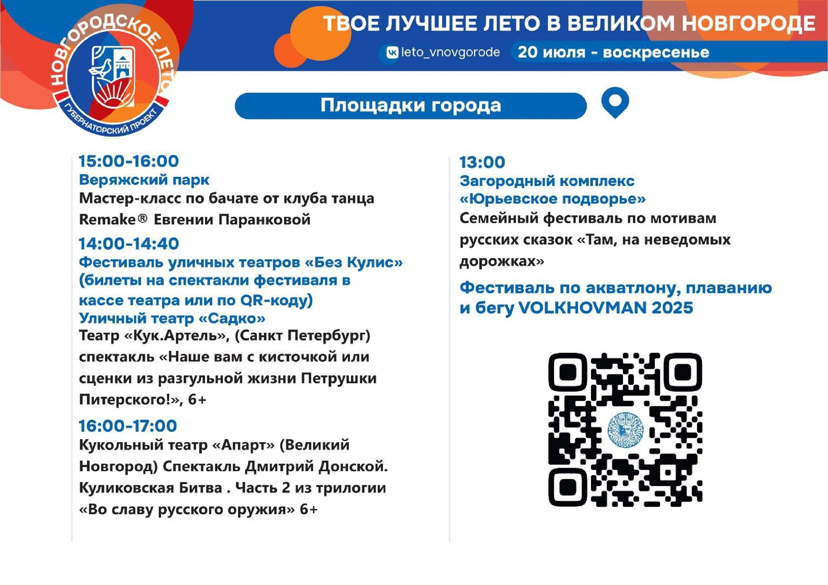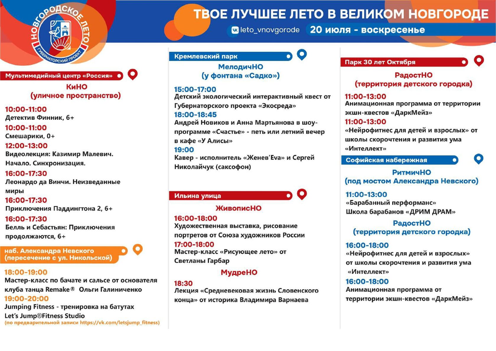 Программа «Новгородского лета» на 18, 19, 20 июля
